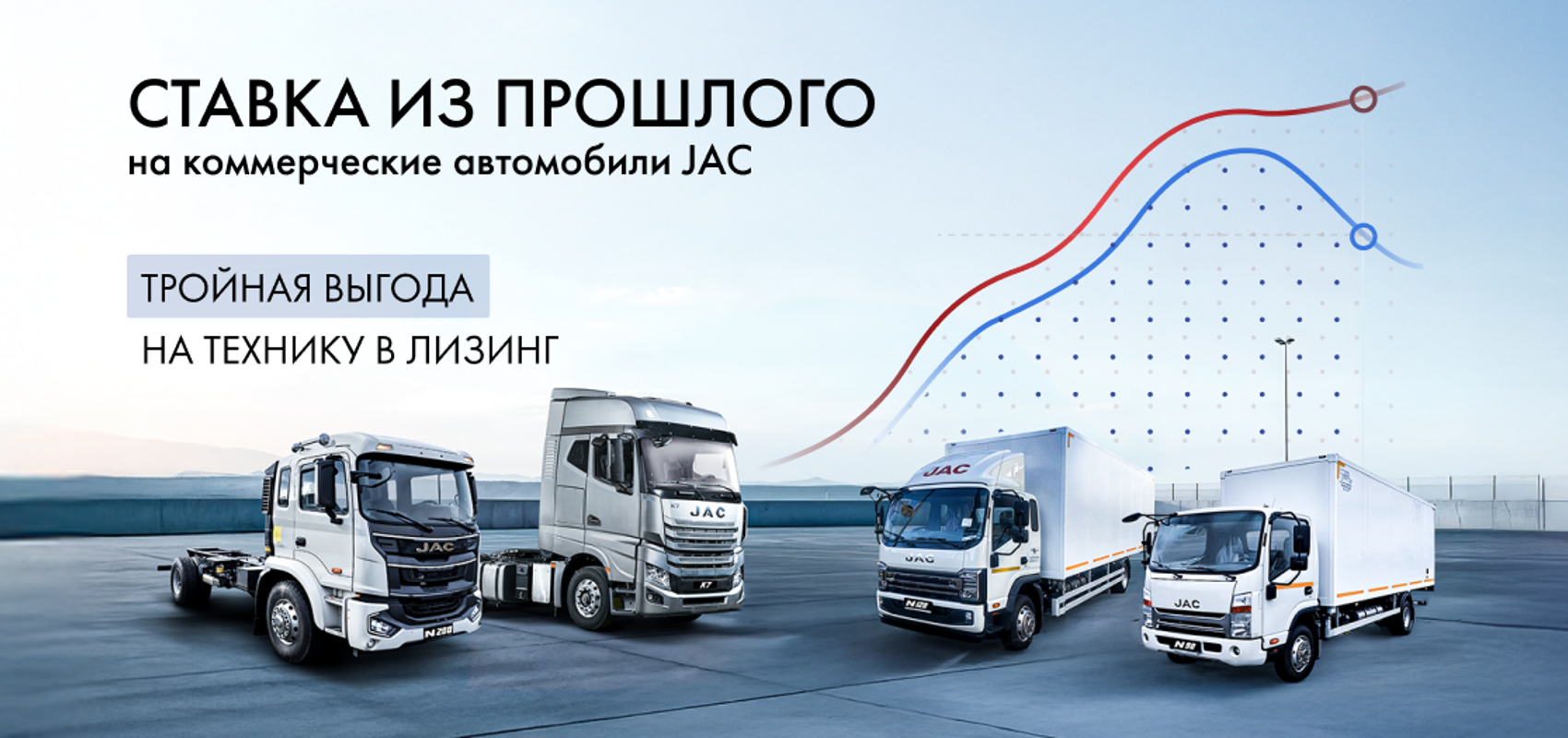 ООО «ДЖАК Автомобиль» запускает уникальную совместную программу «Ставка из прошлого» разработанную в сотрудничестве с Совкомбанк Лизинг, которая предоставляет клиентам тройную выгоду: специальные условия по партнерской программе от Совкомбанк Лизинг, субсидия от производителя в размере 300 000 рублей и продукт «Правильное решение», позволяющие приобрести коммерческую технику JAC на лучших условиях.